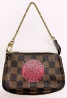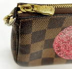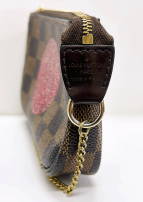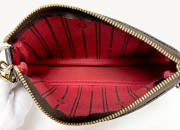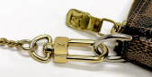 前面プリント(赤い部分)の色剥げが目立ちます。 ダミエキャンバス(前面、底角)にも少々色剥げがあります。 金具に小傷、メッキ剥げがあります。 内側に擦れや薄い汚れなどの使用感があります。 |