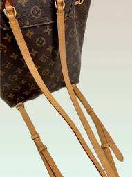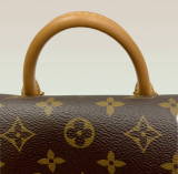 ヌメ革全体が日焼けしています。 ショルダーやハンドルにわずかな汚れがありますが目立つものではありません。 比較的程度の良い商品です。 |